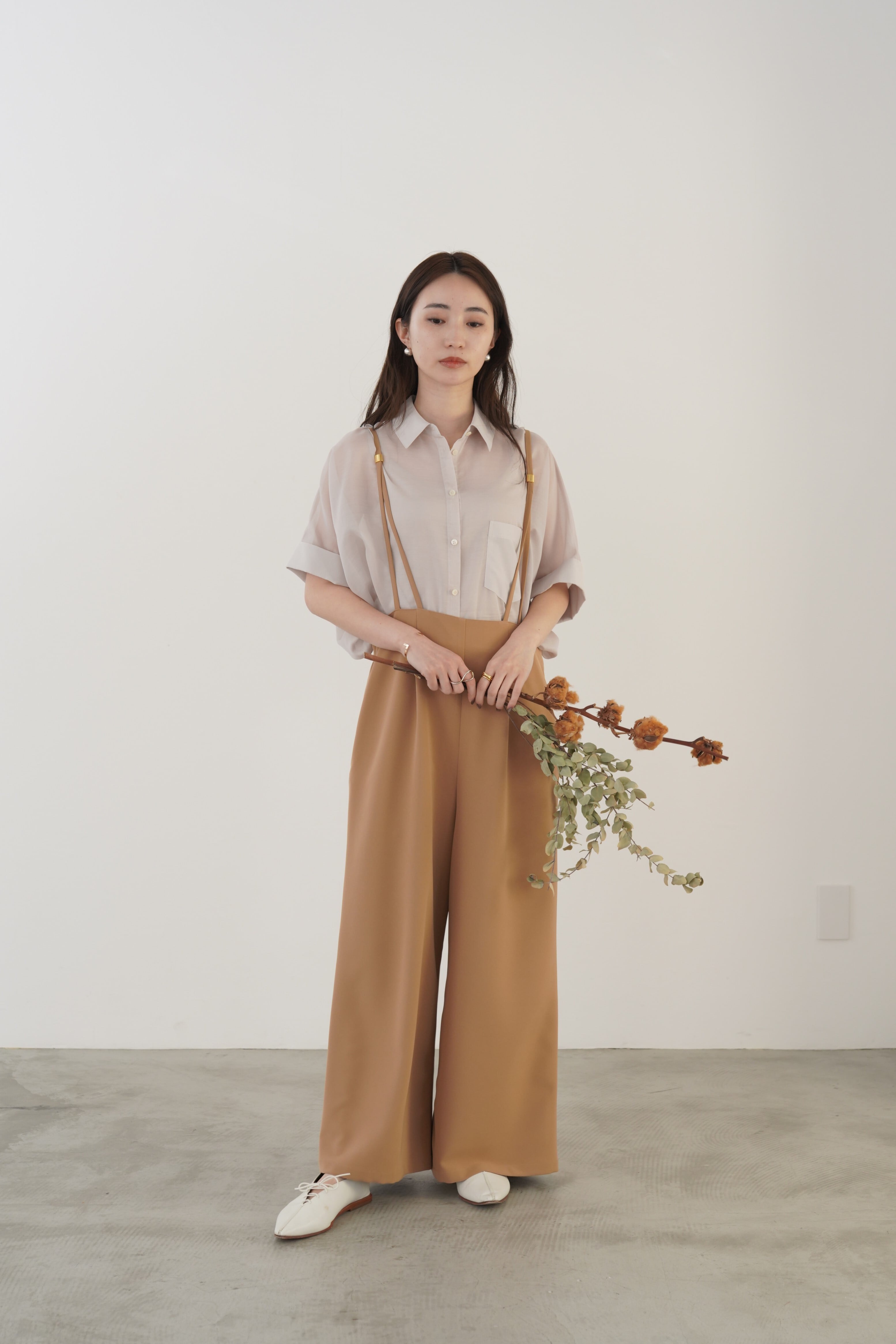 minkchair定番人気のダブルクロスサロペット。イージーケア、防シワ、抗ピリング、ストレッチ性に優れた軽量のダブルクロスを使用しています。後ろ見頃のリボンでウエストに調節ができ、どんな体型の方にも着用頂けるサイズ感がポイント。