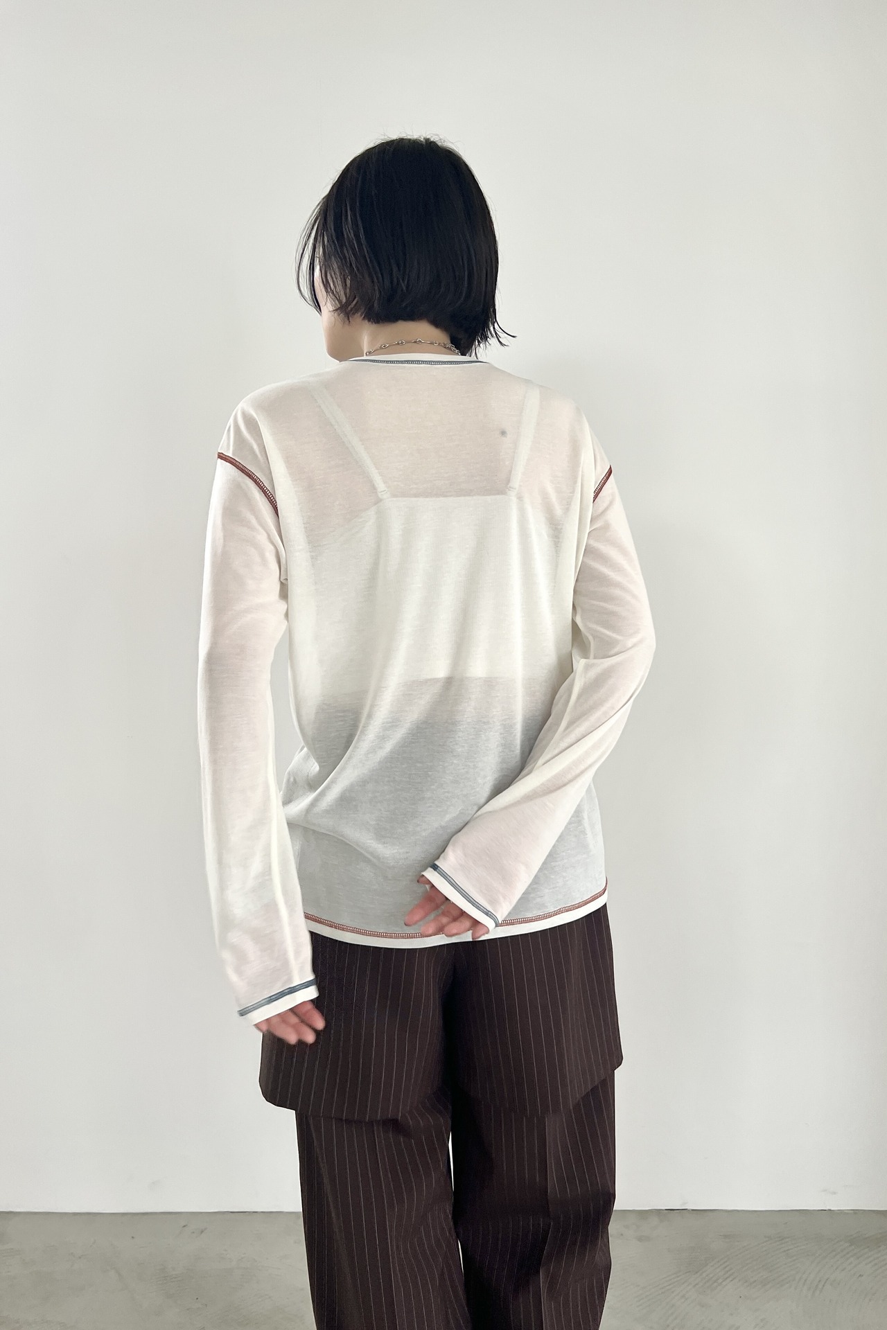 シンプルながらも、配色カラーの飾りステッチが効いたロンT。スーパーソフト加工を施した強撚天天竺を使用しており、綿100%とは思えない独特なしなやかさはお洗濯を繰り返しても変わりません。1枚でも着やすい程良いコンパクト感で、着回しの効くカットソーです。