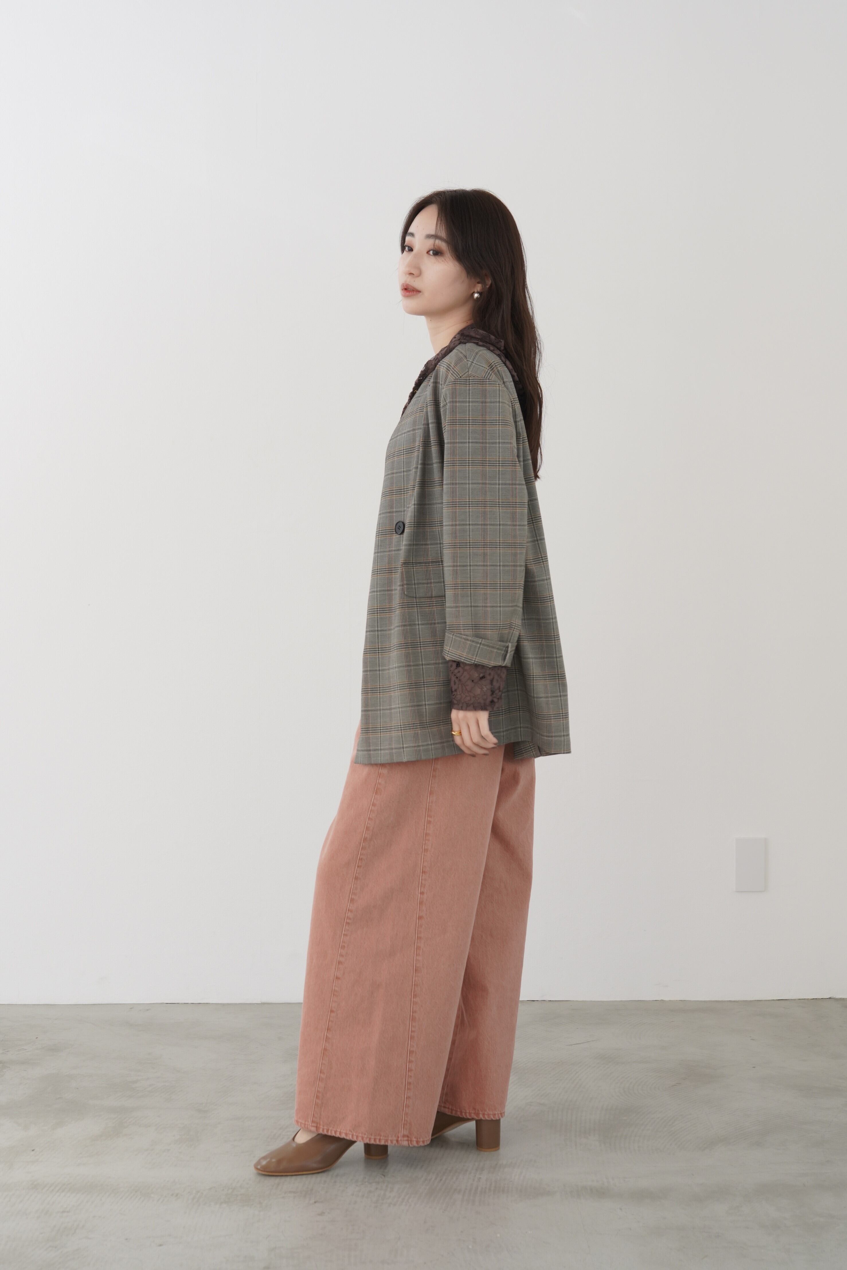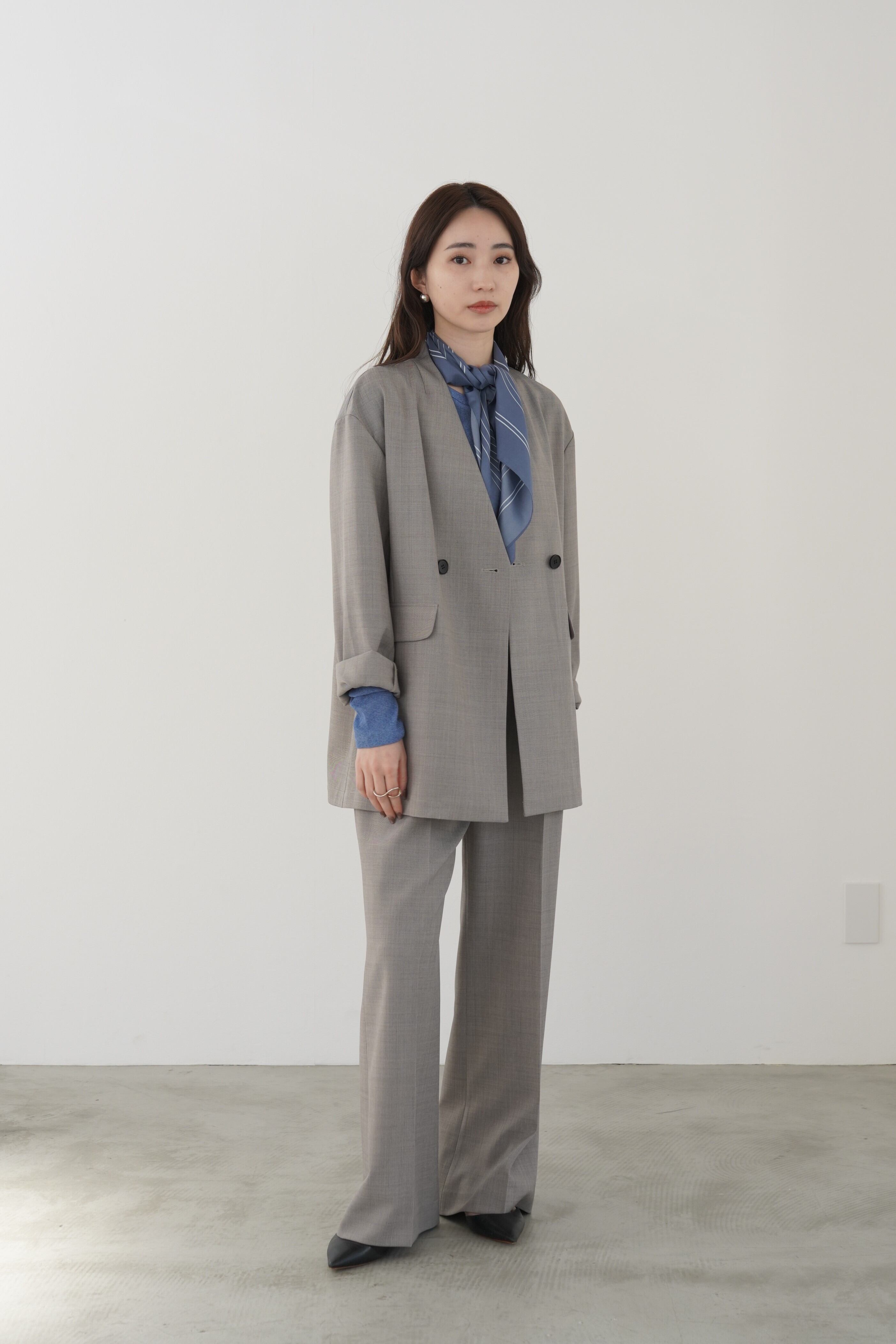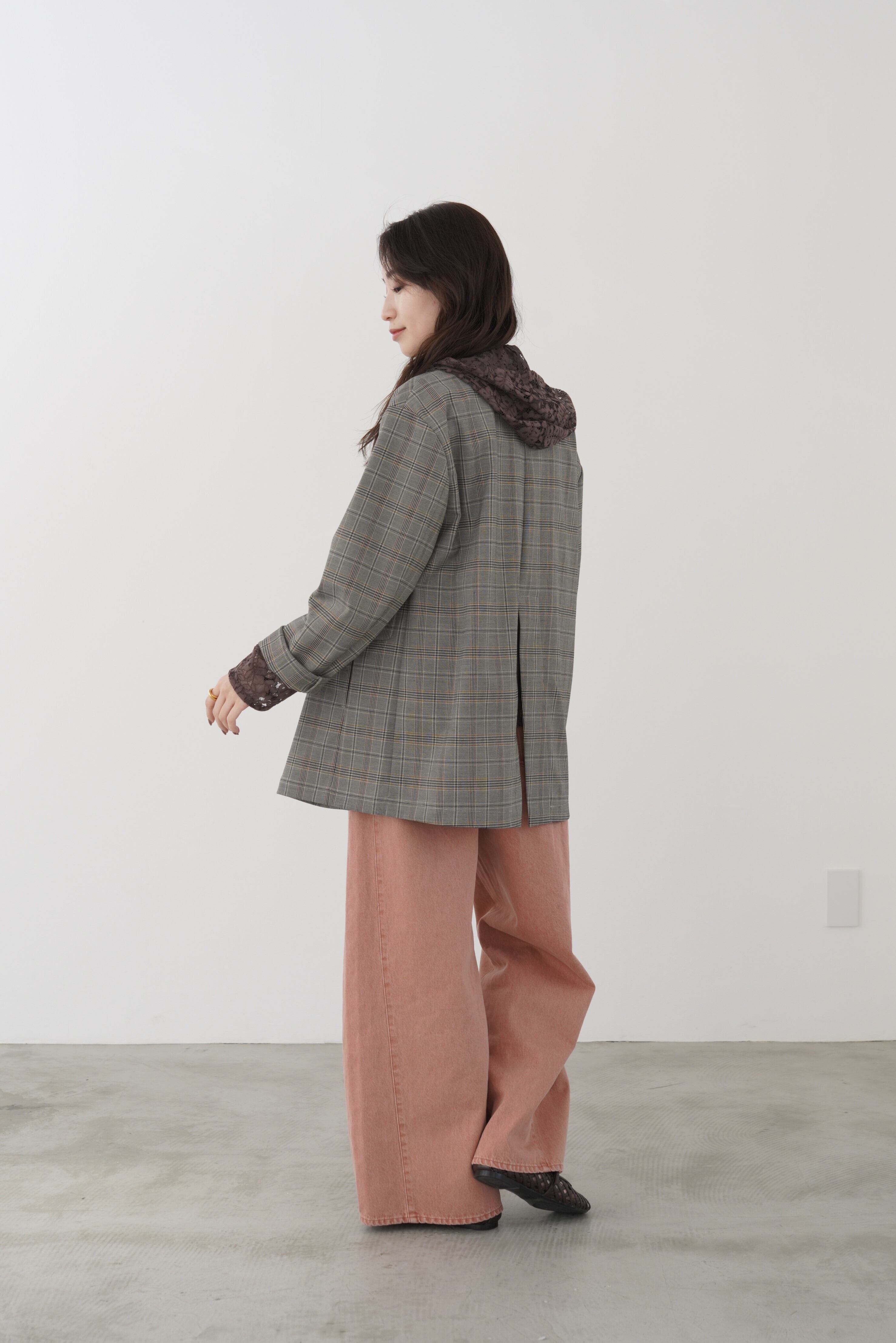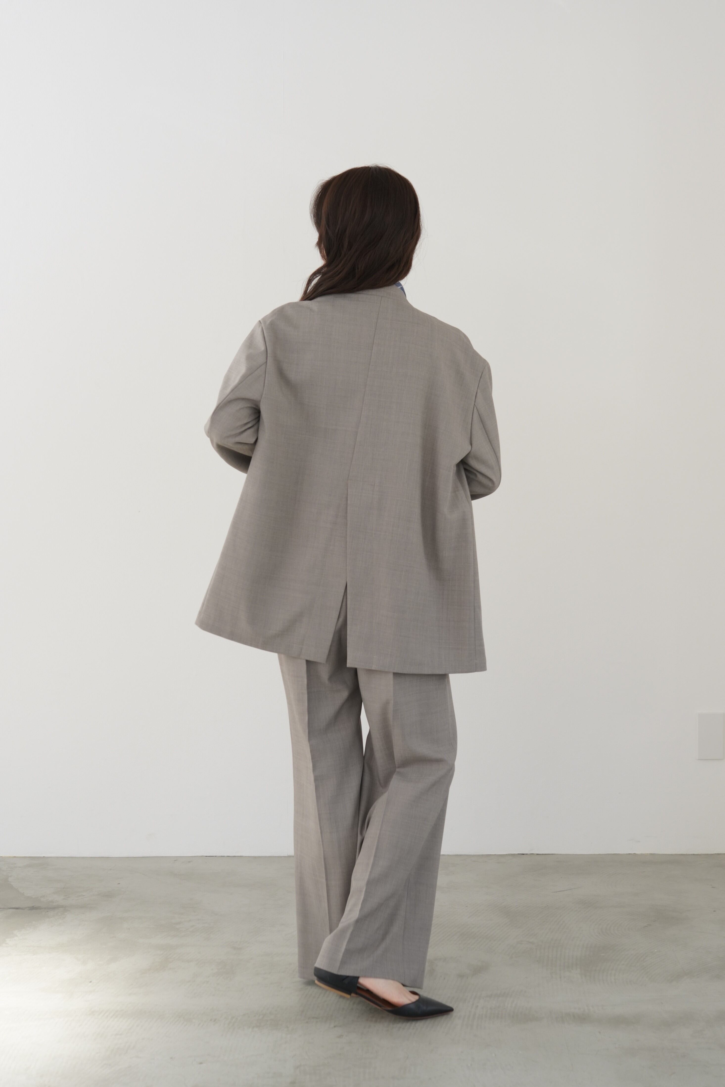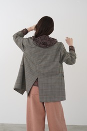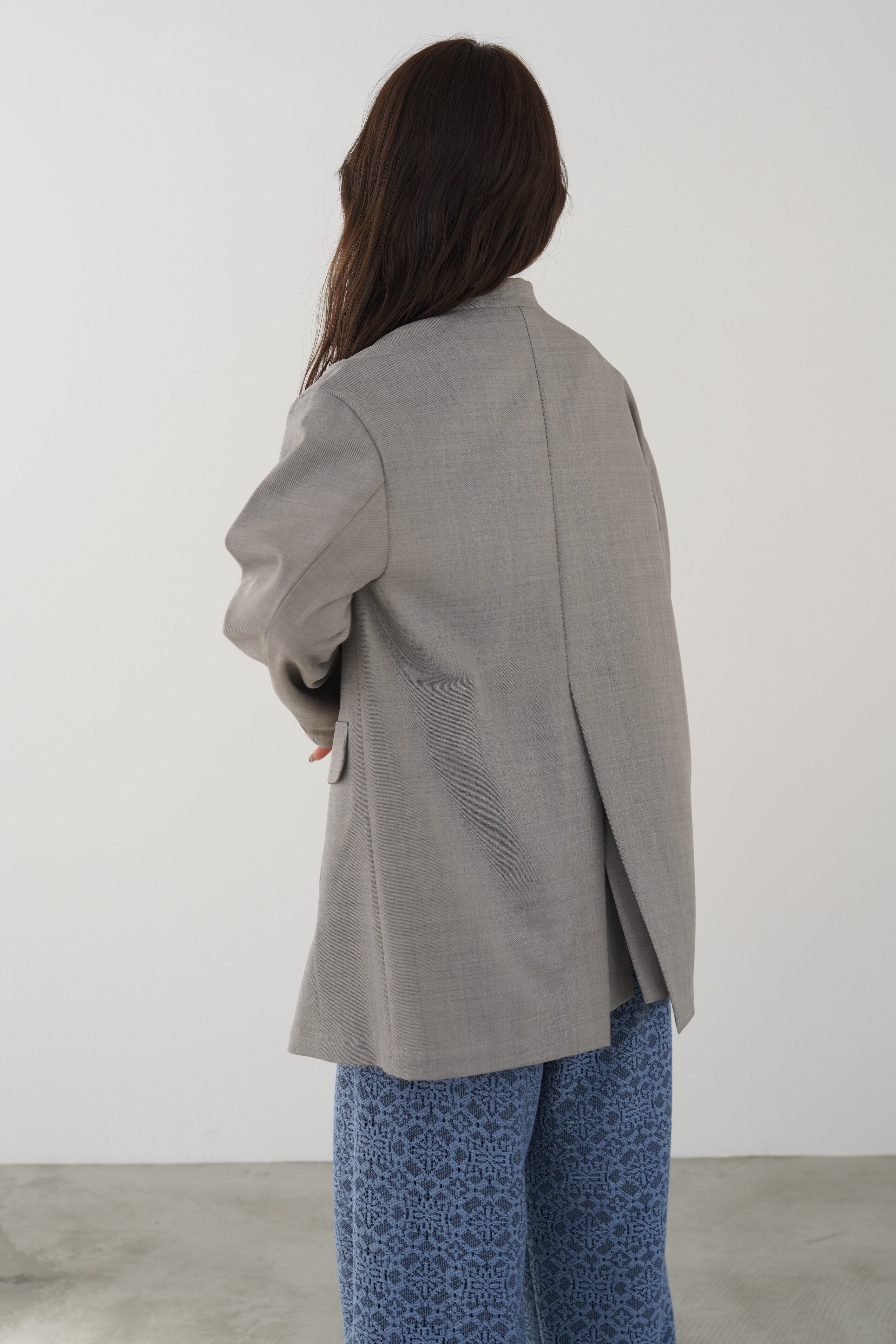きちんと感をキープしながら、背抜き仕様で軽く仕立てたジャケット。体のラインを拾わず、縦長ですっきり着て頂けるバランス。オンオフどちらも活躍する万能ジャケットです。変形のベンツスリットがデザインのポイント。