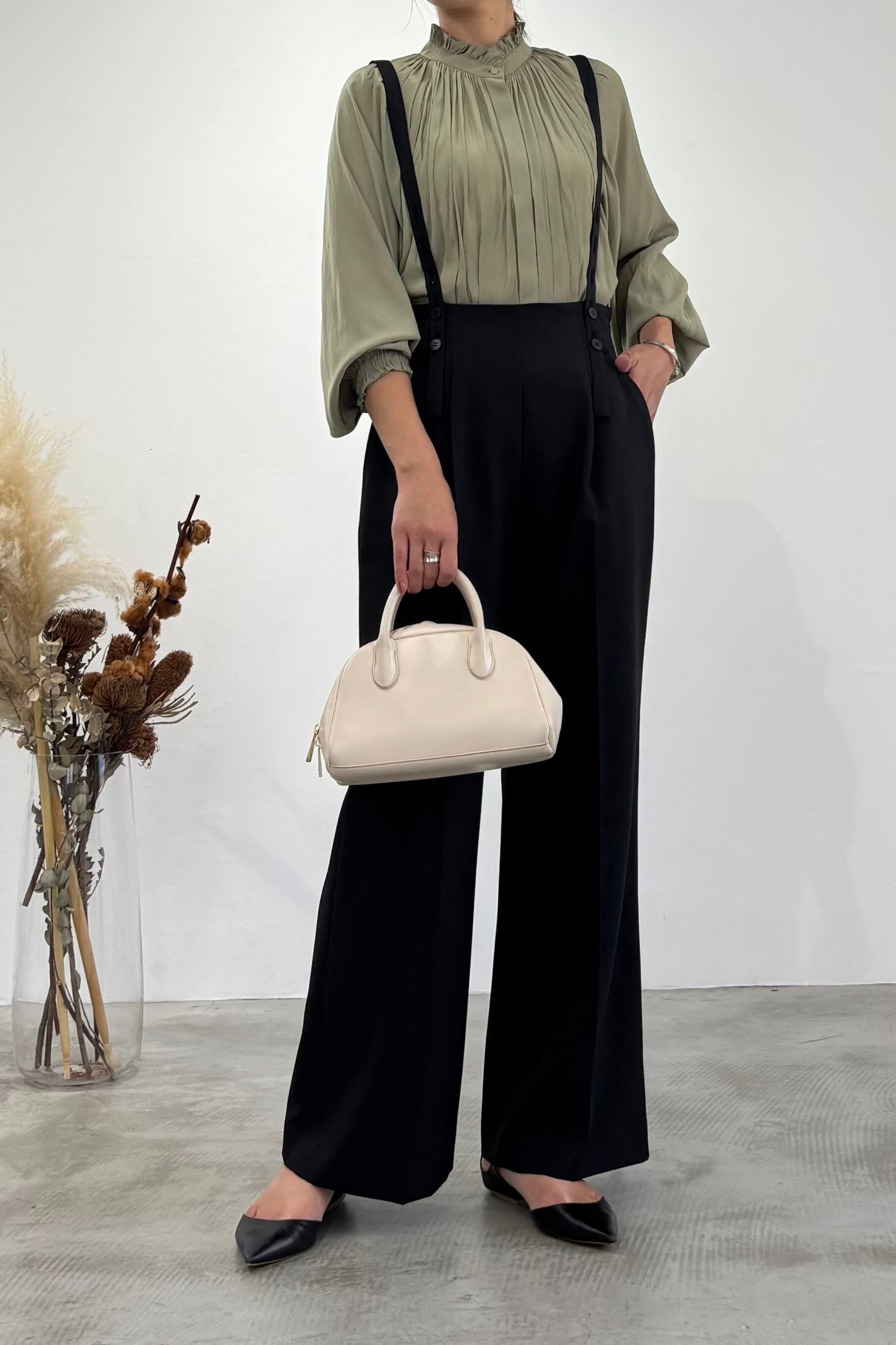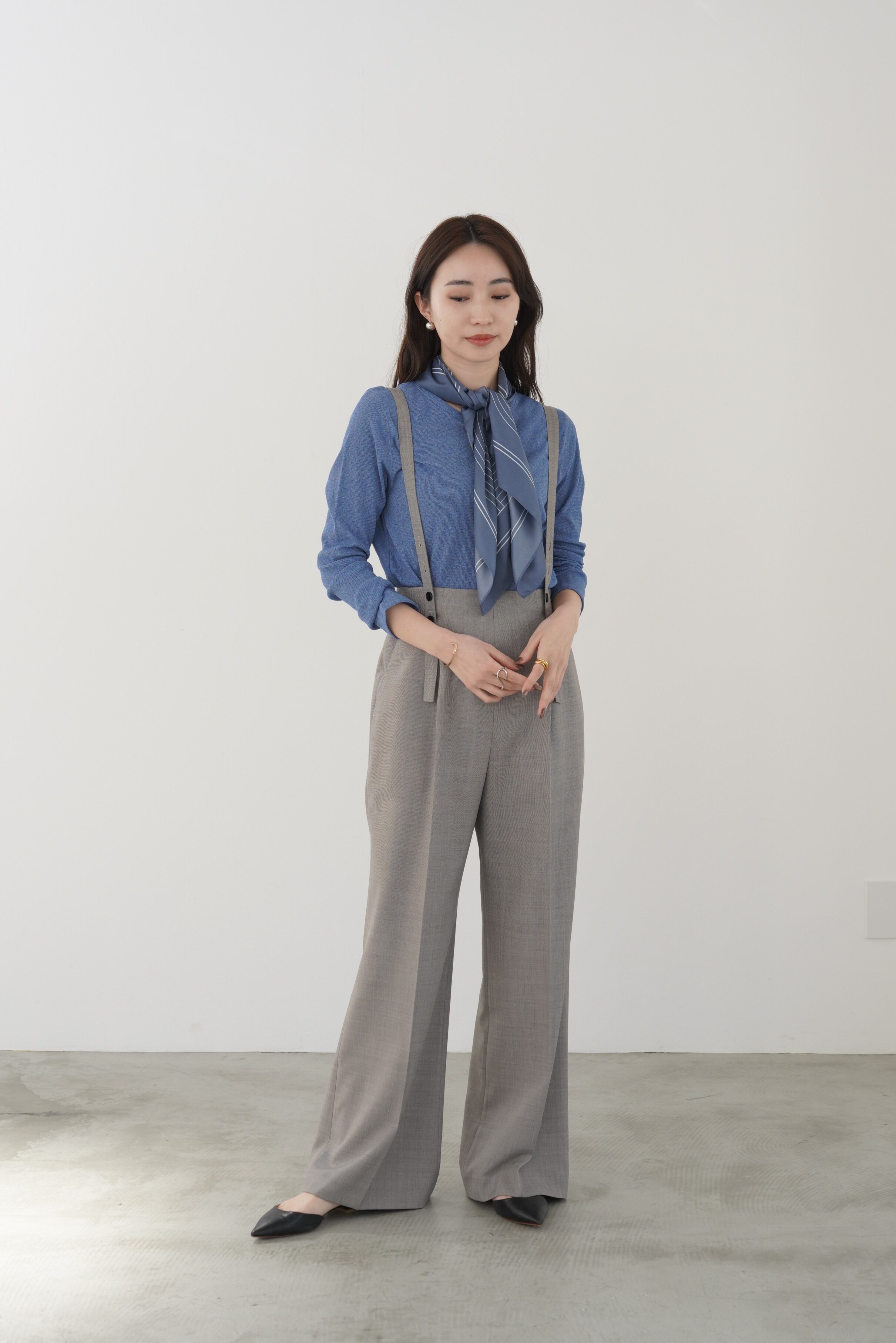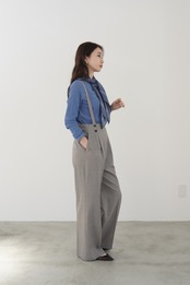 センタープレスとウールライクトロ素材がマニッシュな印象を与えてくれるストレートシルエットのサロペットパンツ。着丈の調節ができる肩紐は取り外してベルトとしても使用でき、3wayで楽しめるパンツです。