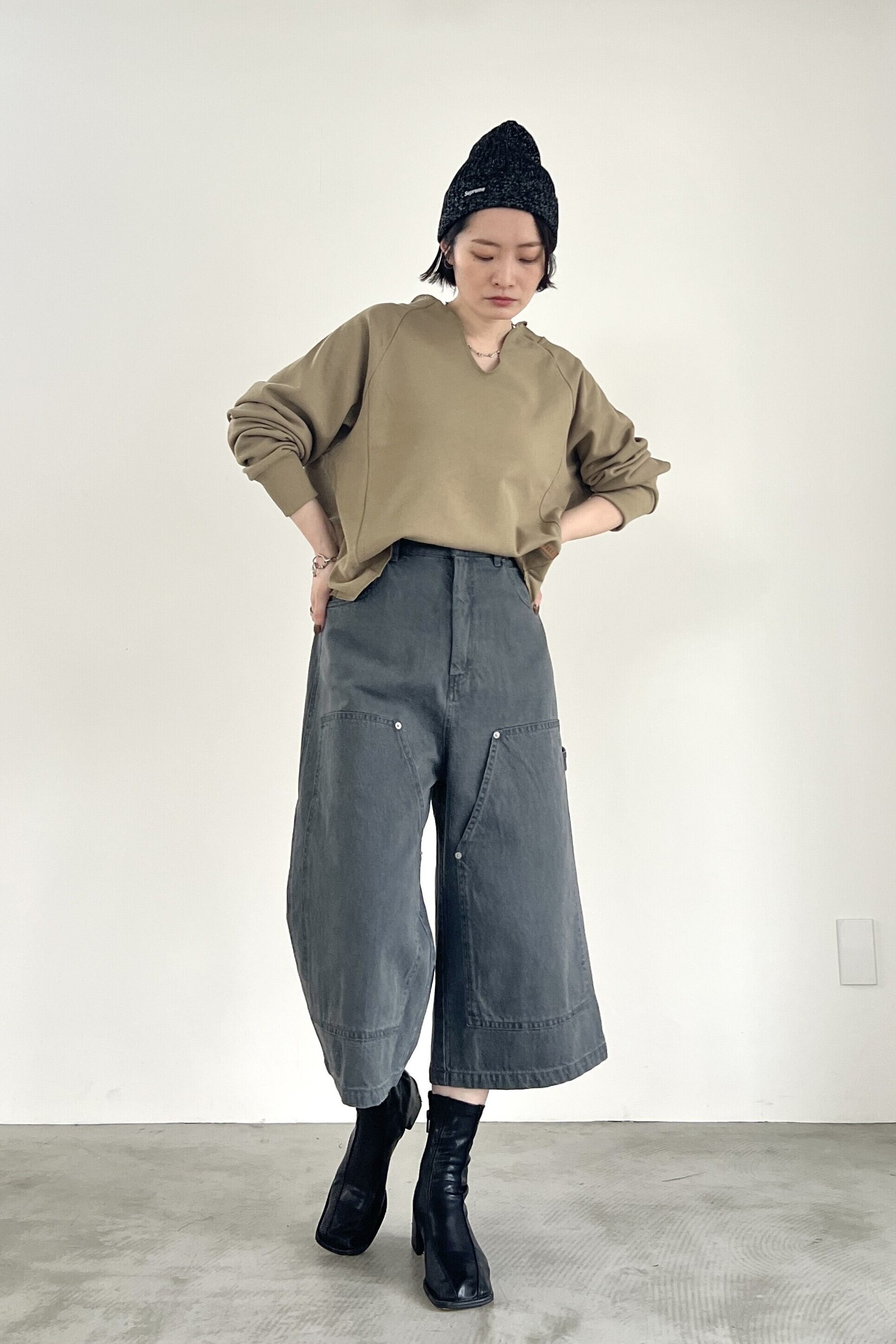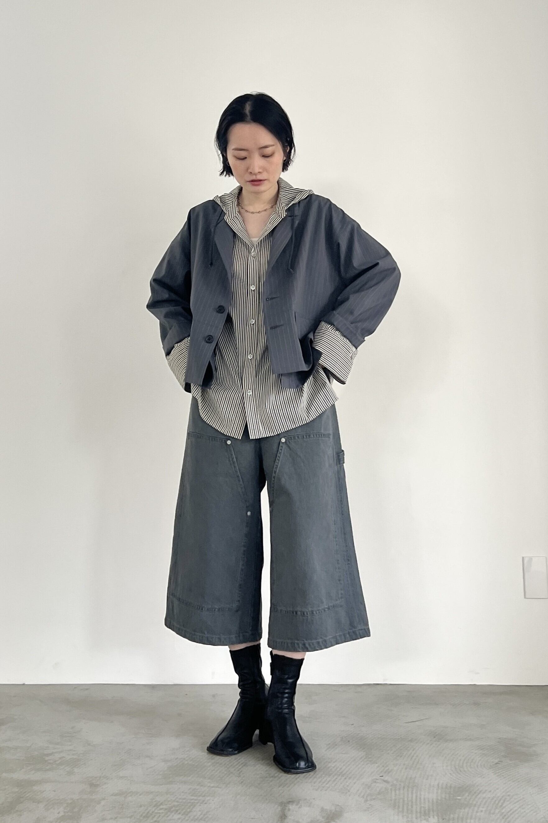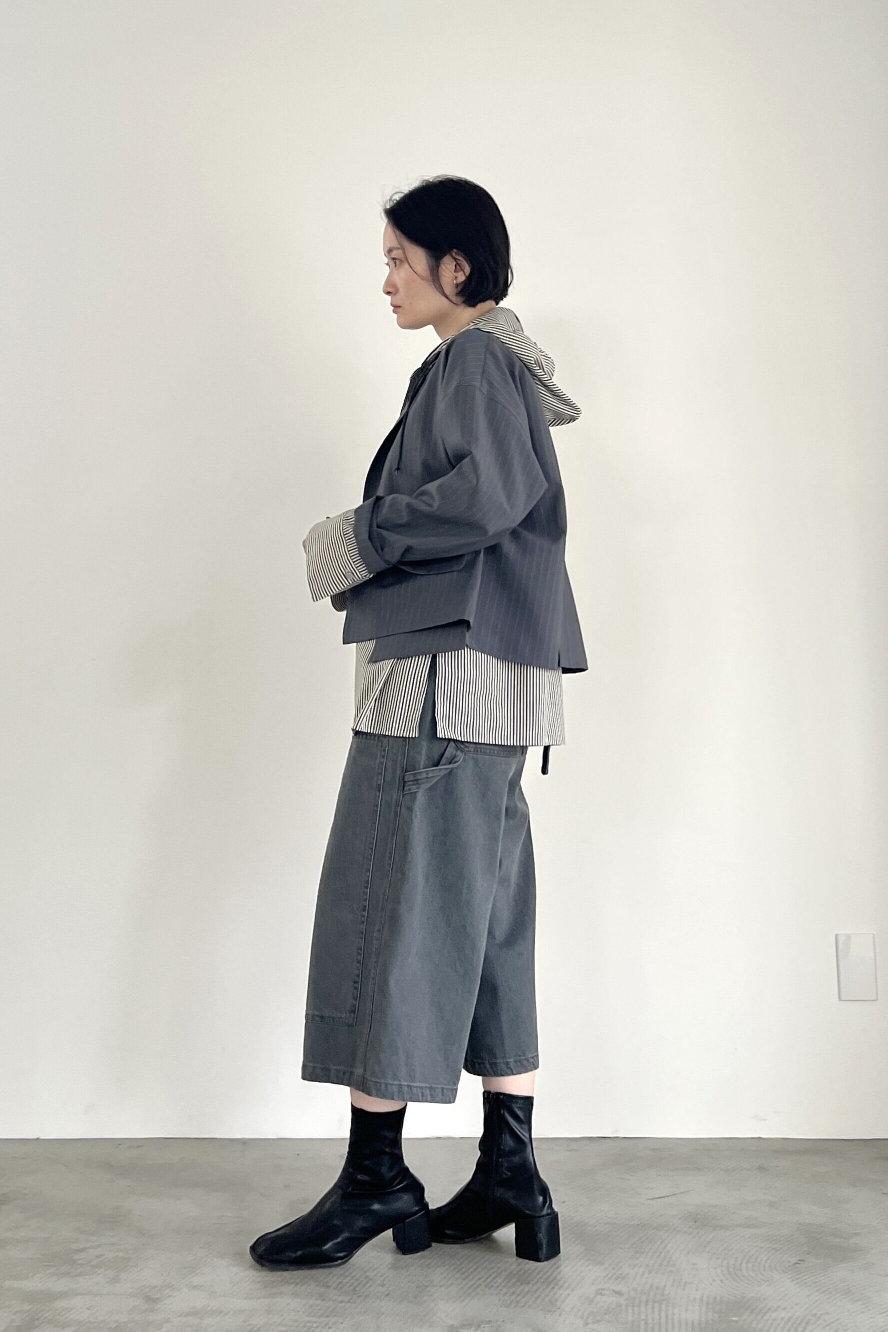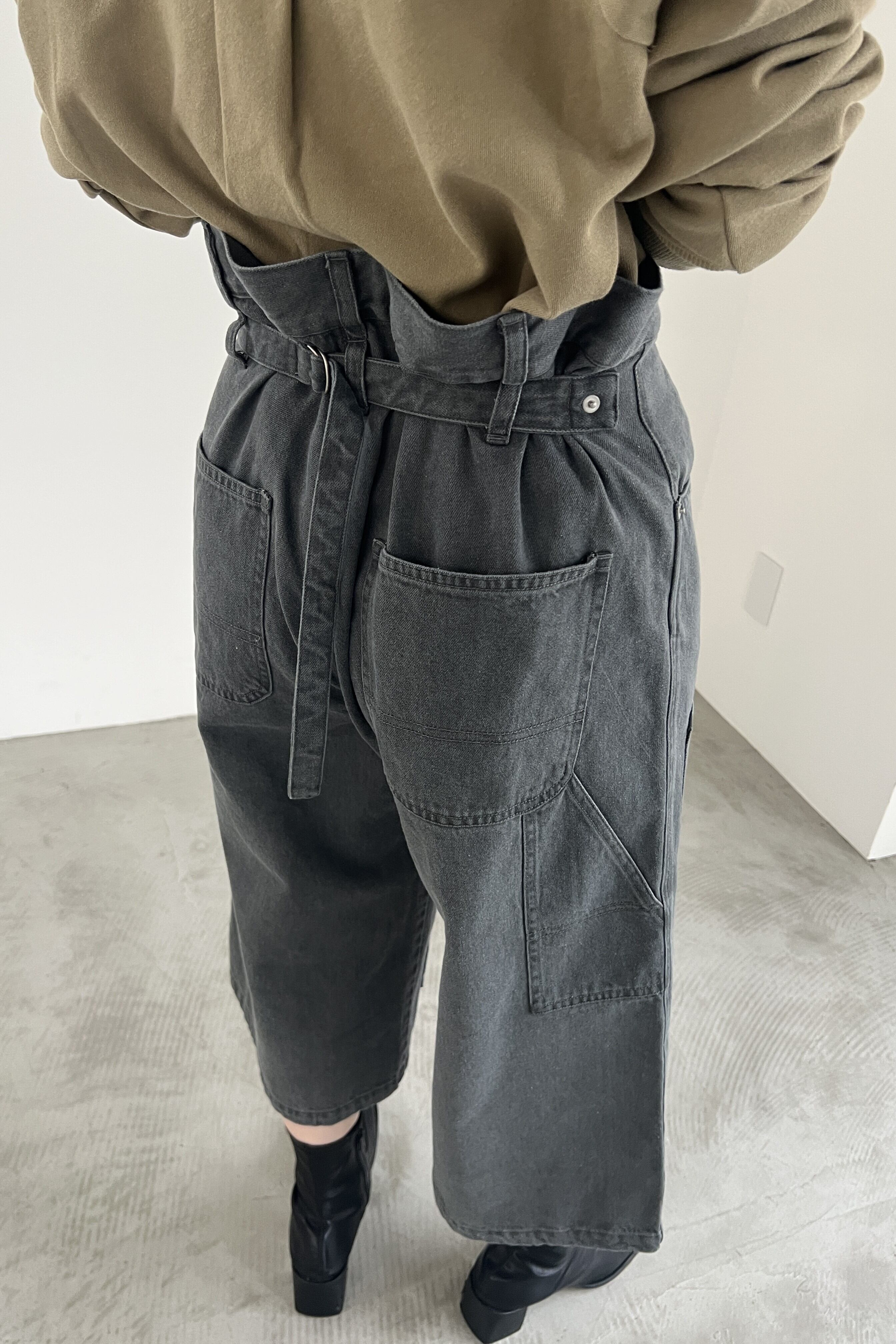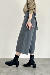 9.8オンスデニムを使用したトレンドのバミューダパンツ。ペインターパンツをベースに、大人が履ける丈感に落とし込みました。ジャケットやシャツ、ブーツなど綺麗めなアイテムと組み合わせることでエッジの効いたスタイリングを楽しめます。バックウエストを大きく作り、ベルトで締めて着用するデザインなので、幅広い方に着用いただけます。