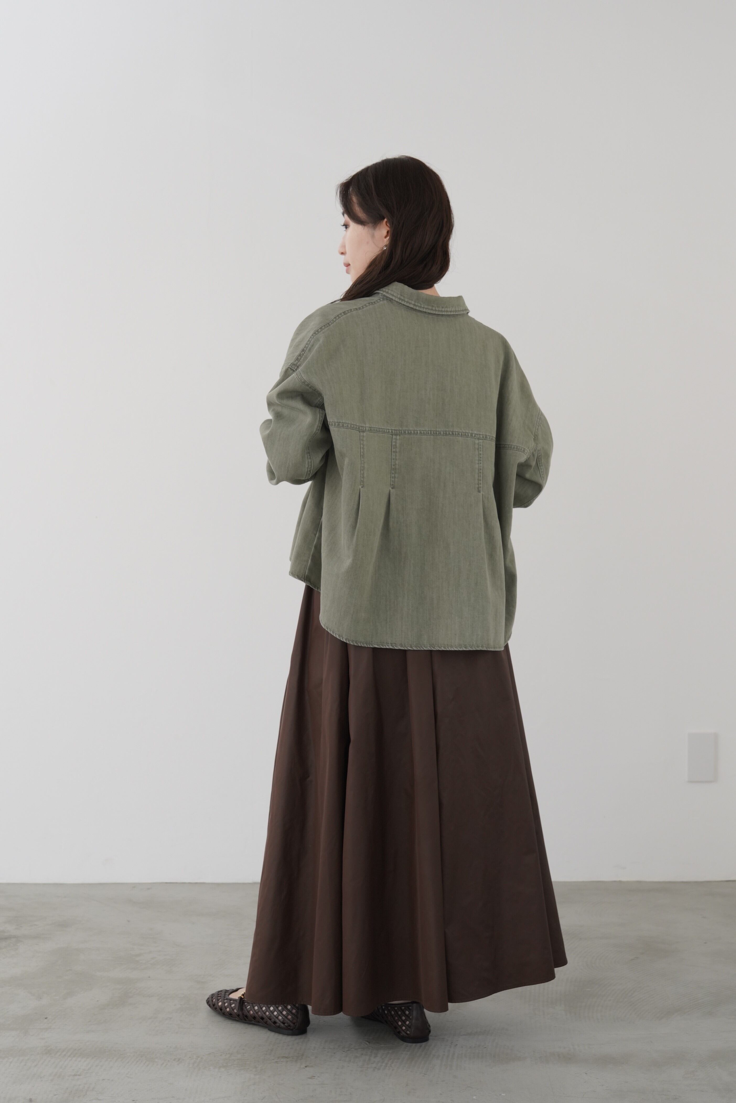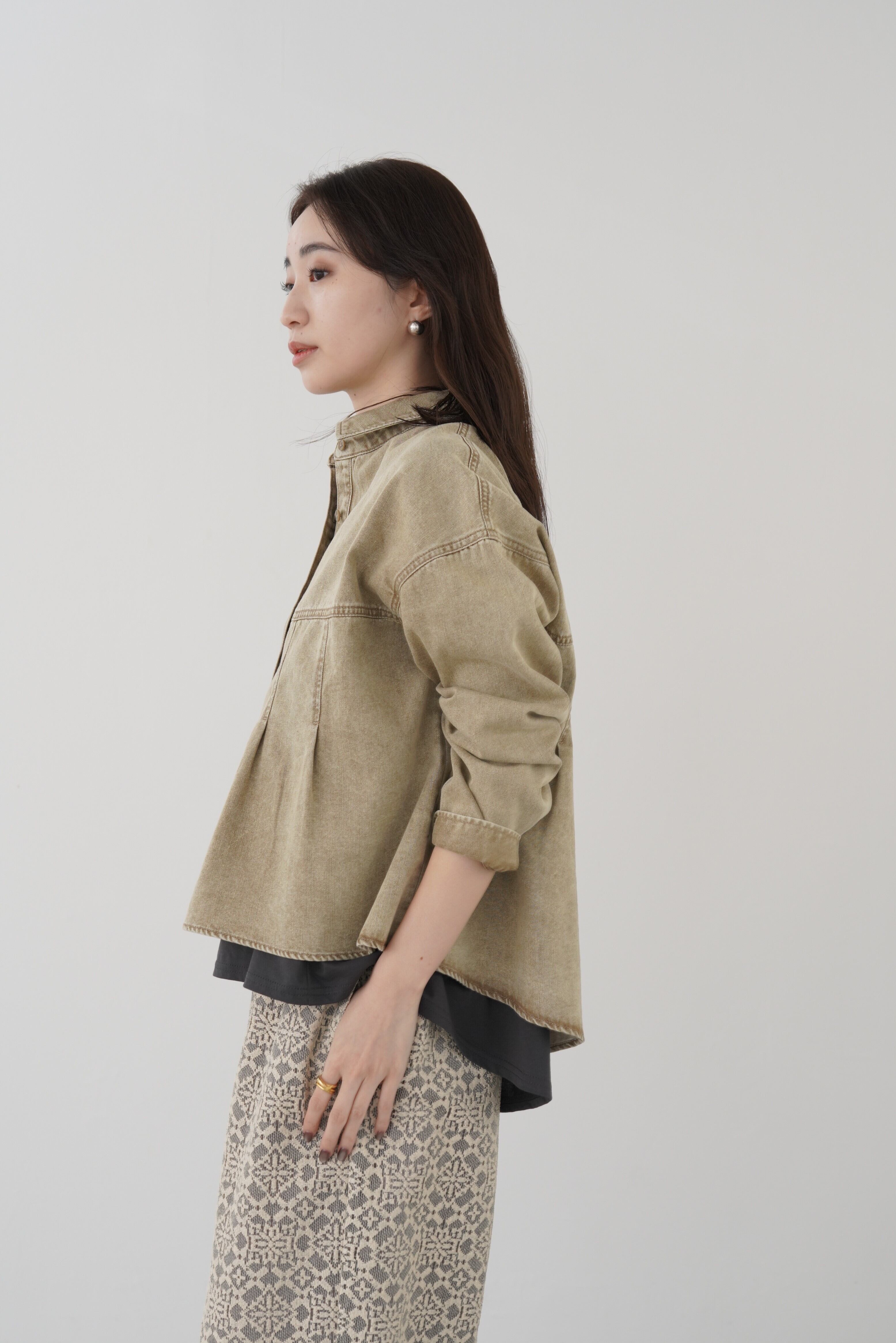カラーデニムに洗い加工を施した独特な風合いのライトオンスデニムシャツ。少し短めの着丈でボトムとのバランスが取りやすく、柔らかい風合いでさっと気軽に羽織れるデニムシャツに仕上げました。