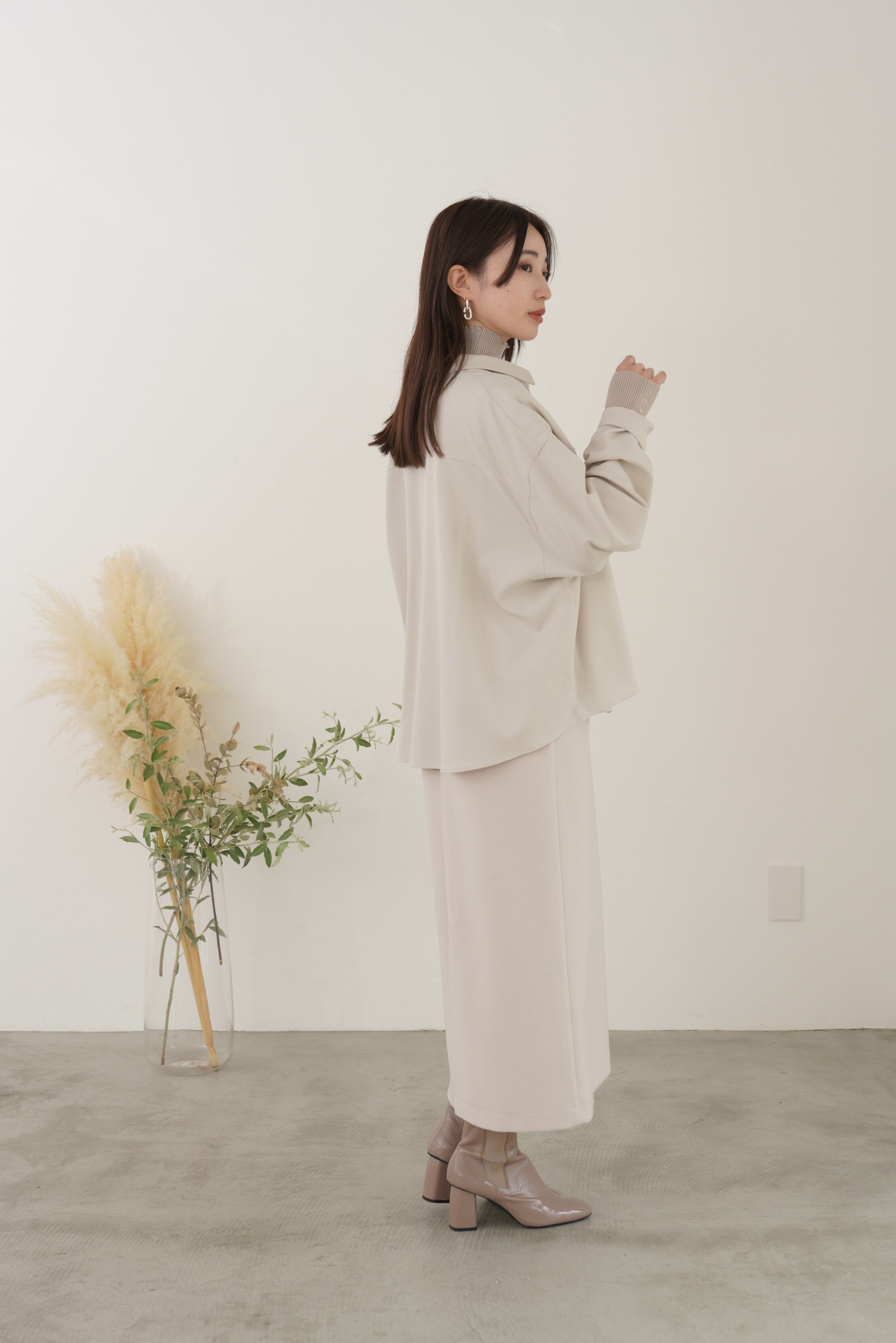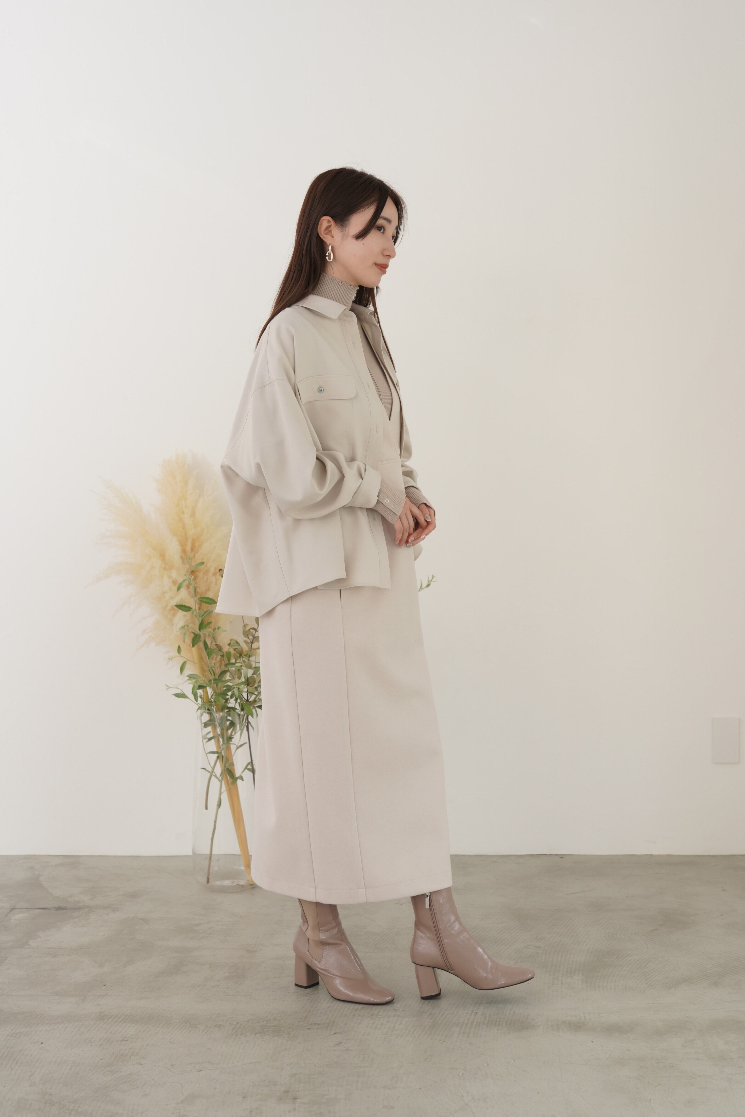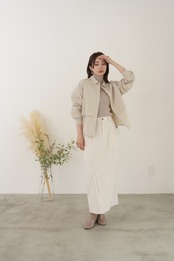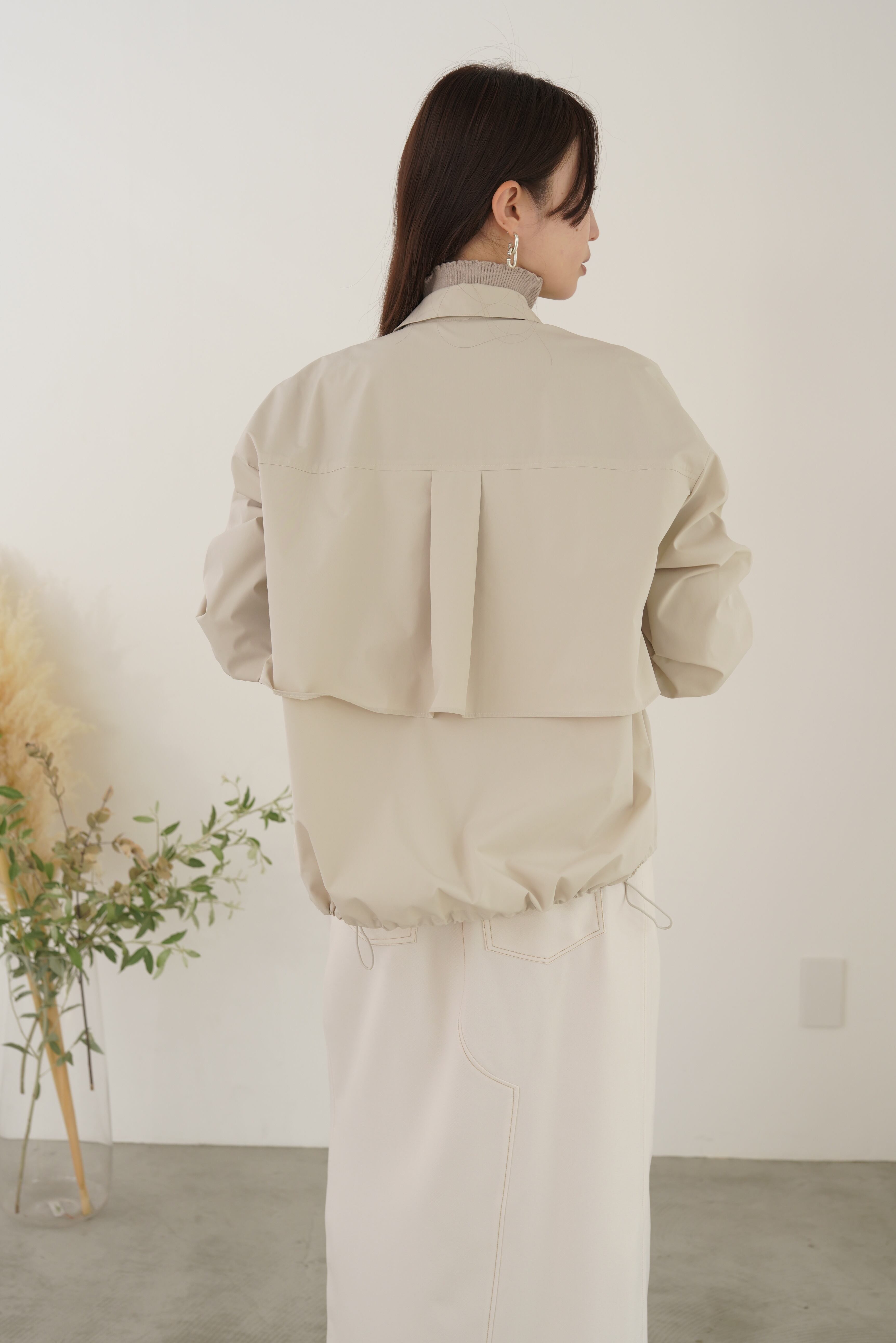アイコンディテールのティアードシャツブルゾン。コットンライクの風合いのポリエステル素材でストレッチ性があり気楽に羽織れるややオーバーサイズに仕上げています。シーズンレスに長く活躍するライトブルゾンです。