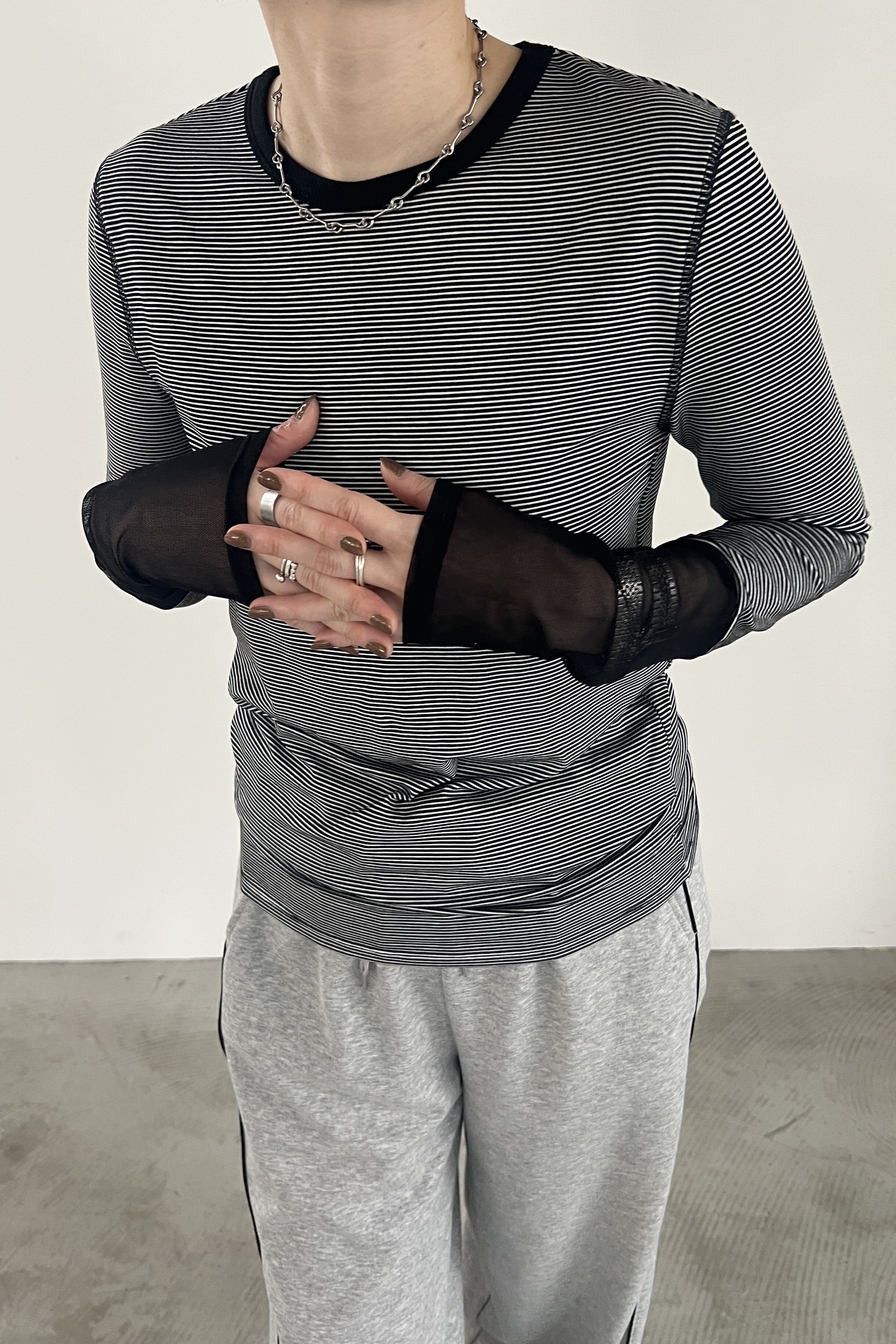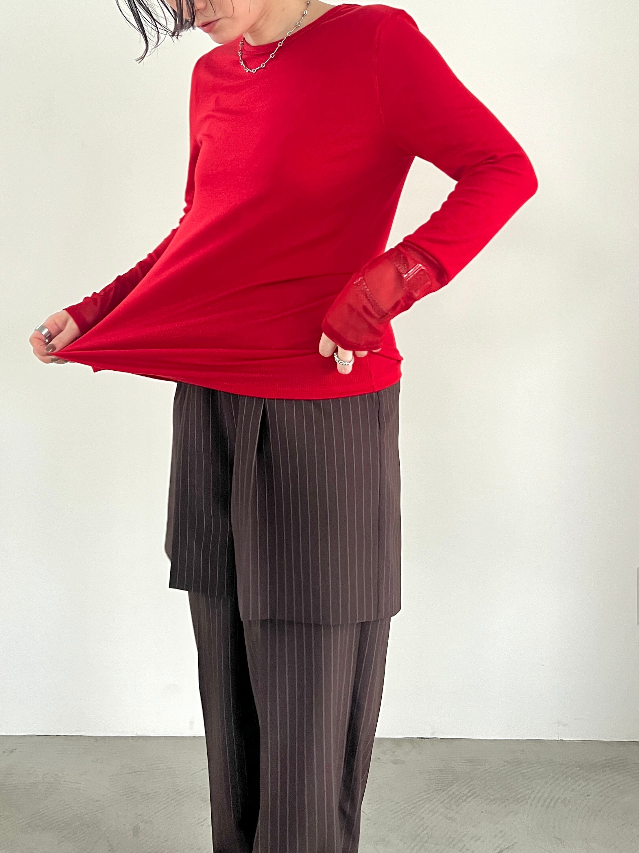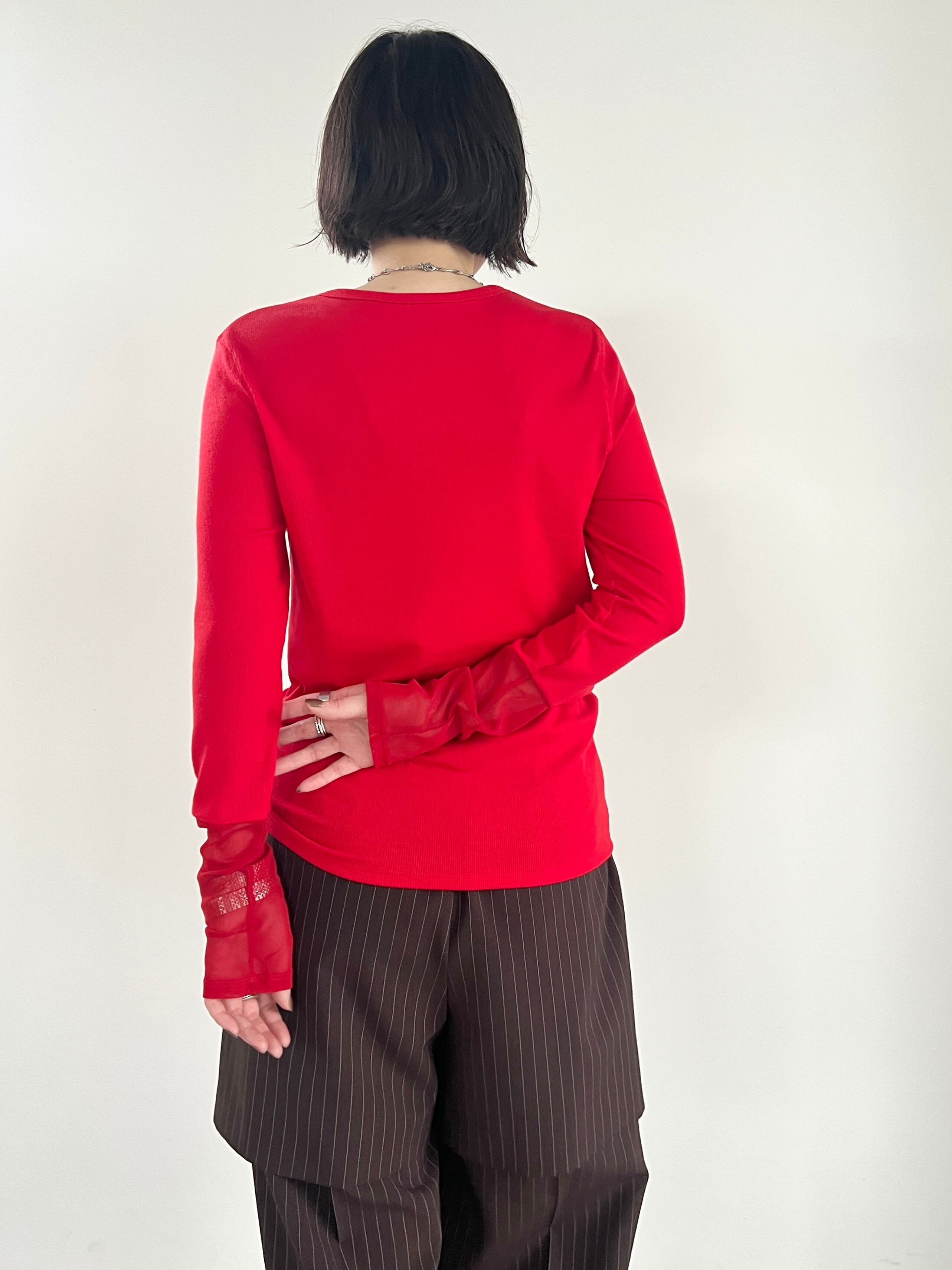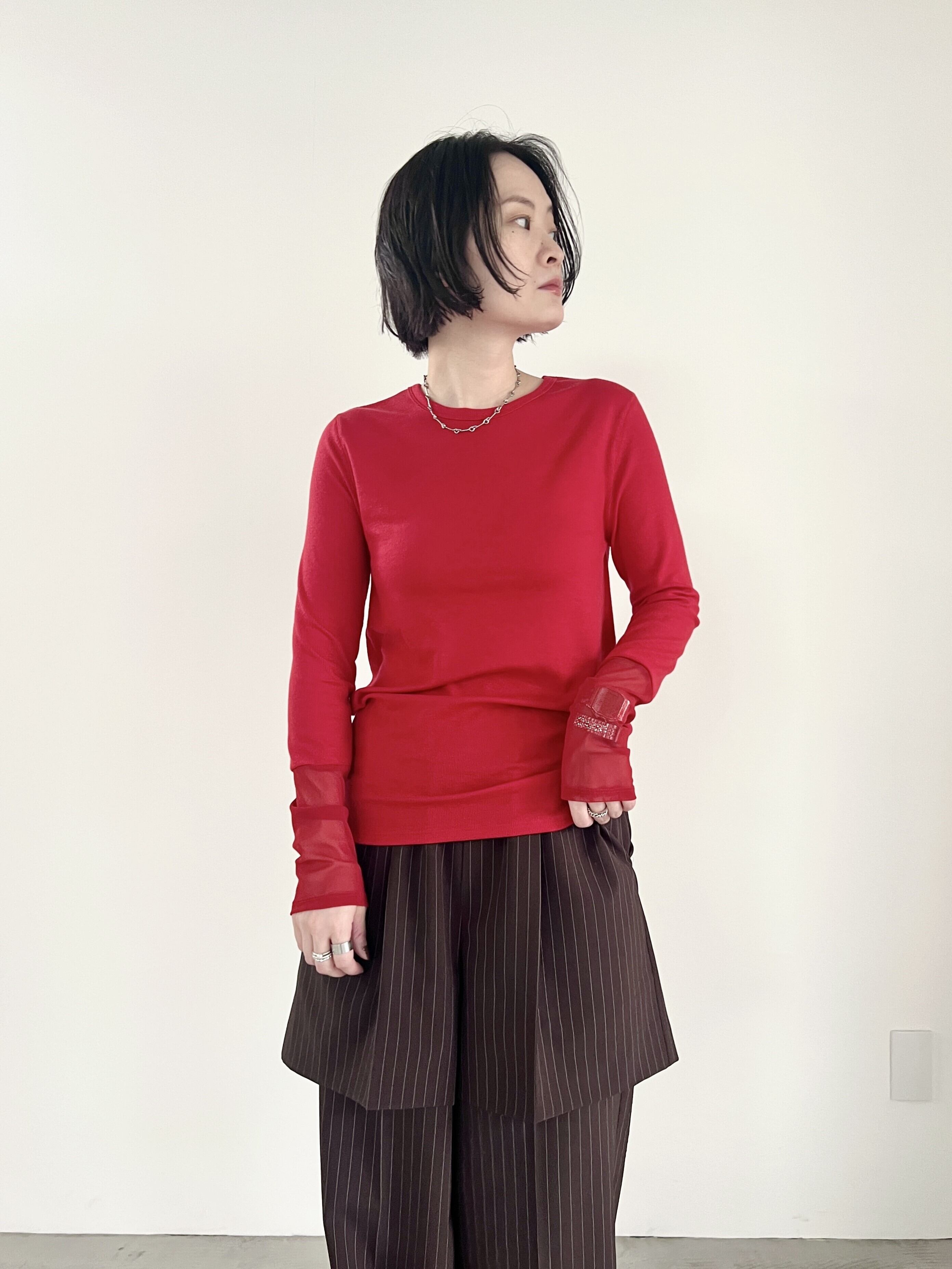 定番人気の袖口チュール切替のインナー。伸縮性の高いとろみのあるテンセル素材で、肌触りが良く身体にフィットする着心地抜群のインナーです。秋~春までロングシーズン着用していただける、レイヤードスタイルに欠かせないアイテムです。