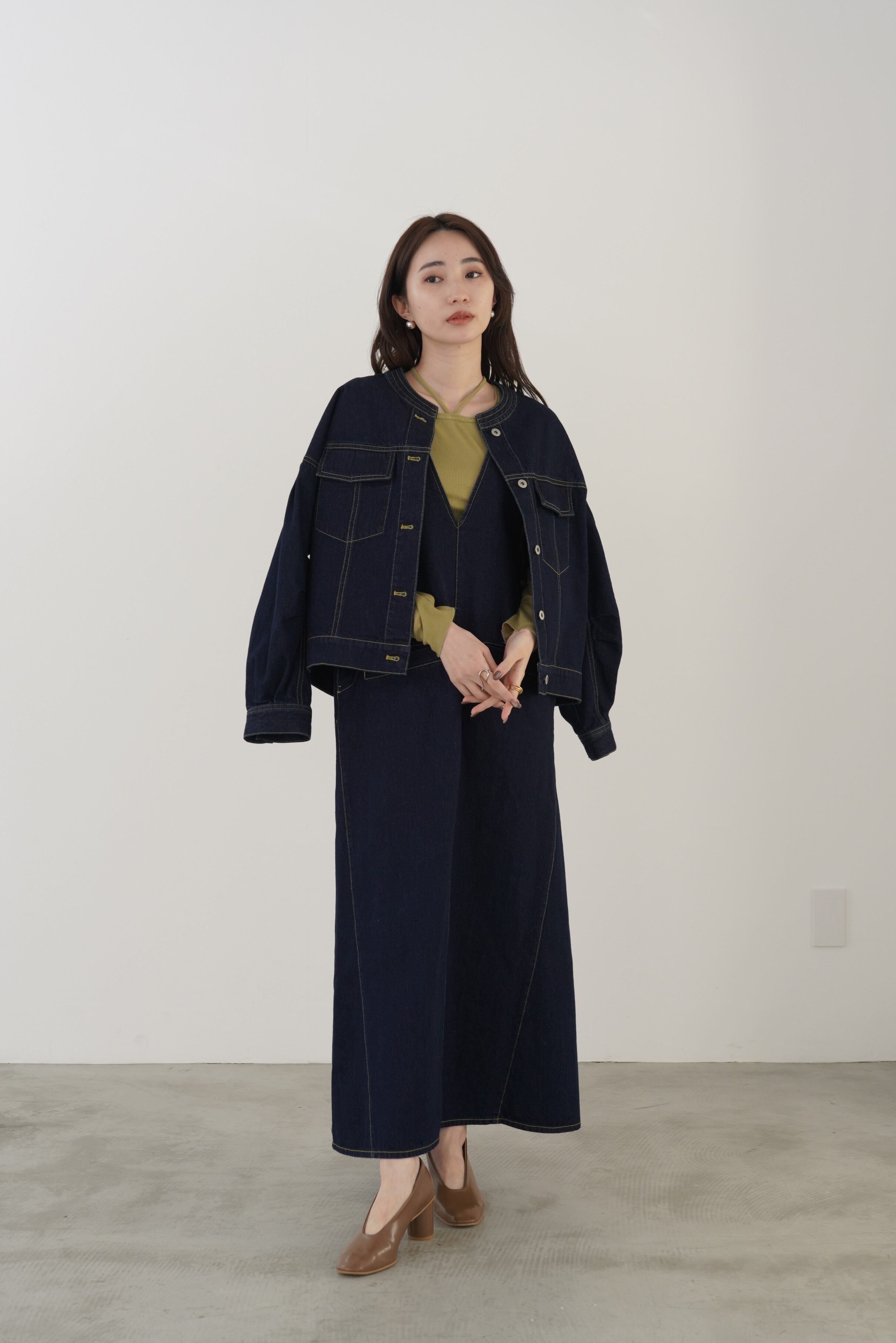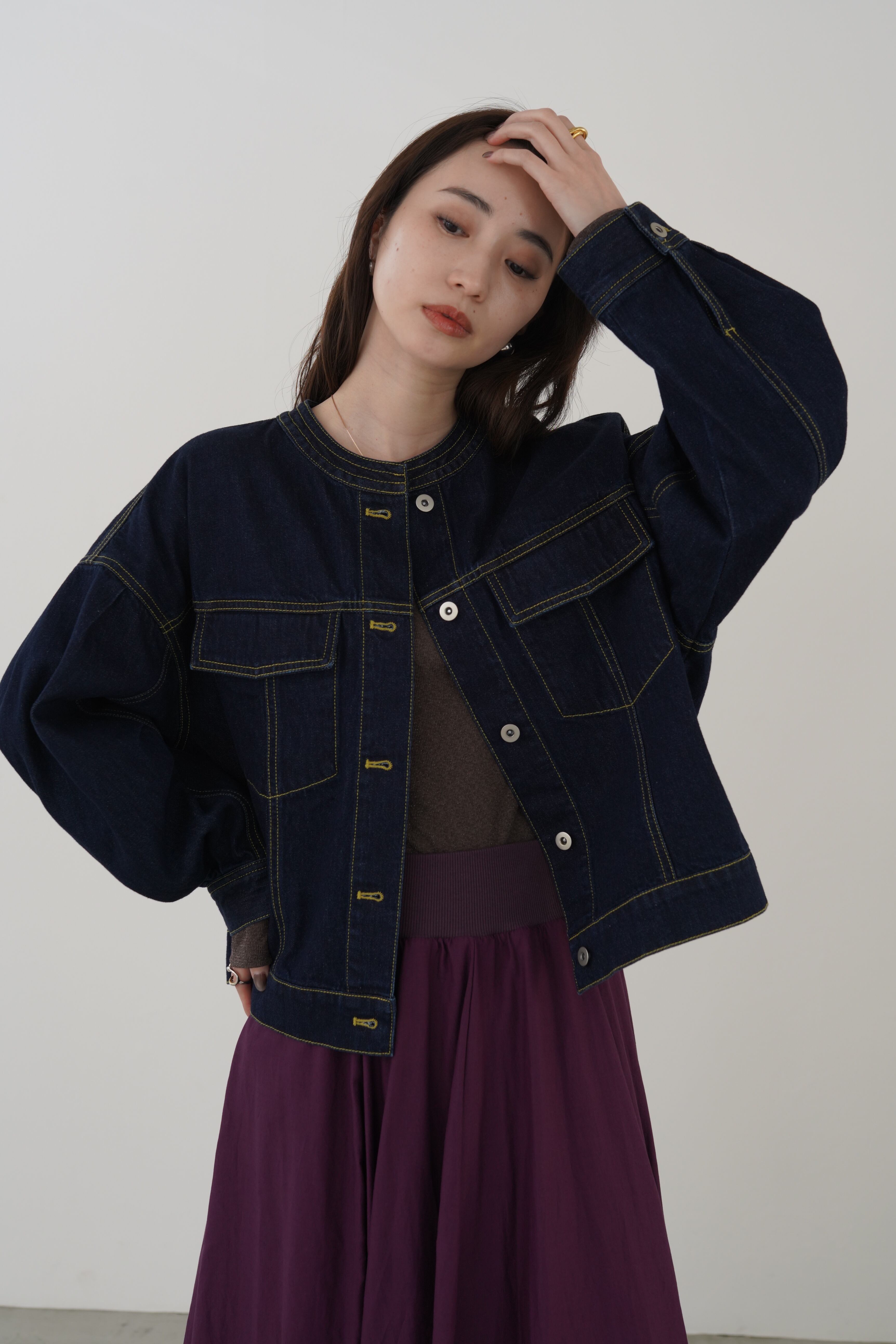 コクーンのバックシルエットが映える、ややオーバーサイズのデニムジャケット。ウォッシュ加工を施した柔らかく着心地の良いデニムを使用しており、厚手のアイテムも着込めるサイズ感なので長いシーズン着回しができます。